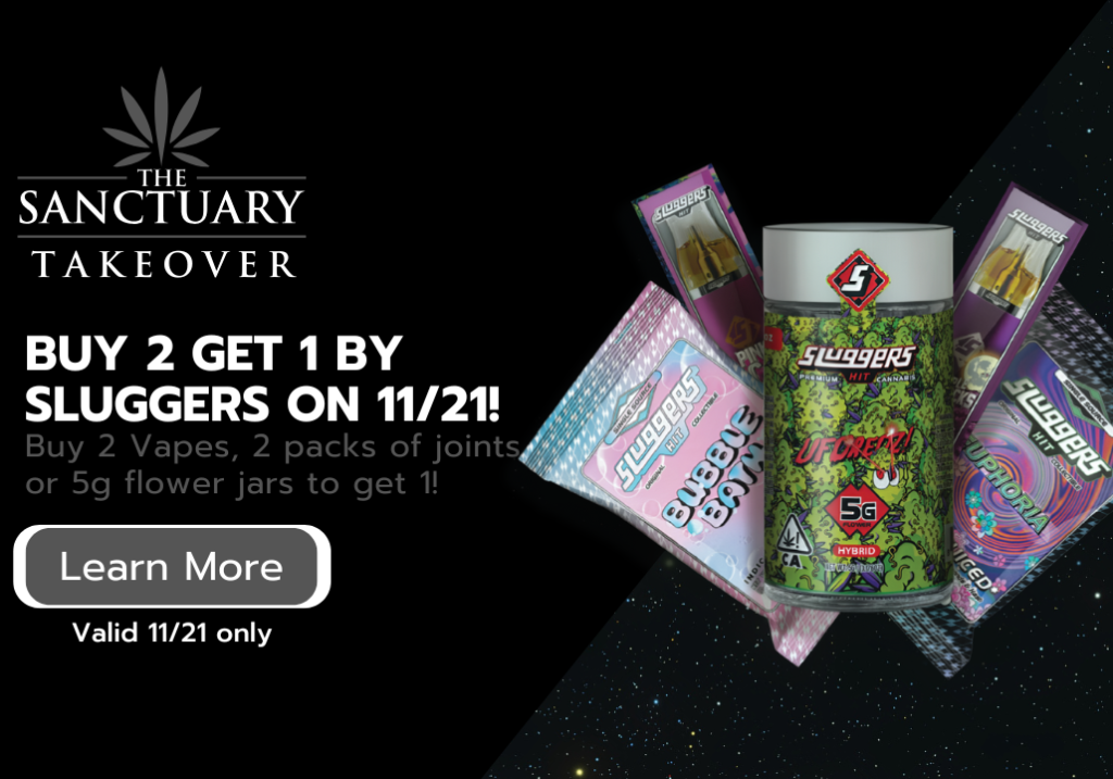 Feauting Buy 2 get 1 specials on their 5g flower, 1.2g all-in-one vapes and 5pk joints from 1-6pm on 11/21.