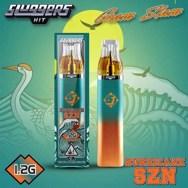 The Hurricane SZN 1.2g disposable vape promises an unforgettable experience, boasting a gassy yet sweet vibe. Make sure to inhale the goodness and savor every moment. Hold on tight for Hurricane SZN, a powerful storm of flavor and relaxation that transports you to a paradise of thrilling euphoria. Brace yourself for a wild cannabis adventure that will sweep you off your feet! Get ready to be blown away by the excitement! SLUGGERS HIT is a Single Source experience. We only roll what we grow. We only infuse with what we extract