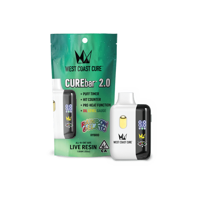 Immerse yourself in the vibrant zest of WCC’s All-In-One Rainbow Gelato Live Resin CUREbar. The balanced hybrid oil delivers a punch of diverse flavors that tantalize your taste buds, offering a shift in mood that's both uplifting and calming. The perfect vibe-shift vape for any time of day, Rainbow Gelato envelops you in a colorful wave of inspired relaxation.