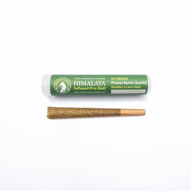 Peanut Butter Soufflé infused pre-rolls deliver a rich chocolaty earth flavor with spicy cookie and sweet nutty notes. This hybrid provides a calming, tingly body high that settles into a couch-locked bliss, ending with a sleepy, sedative comedown.
